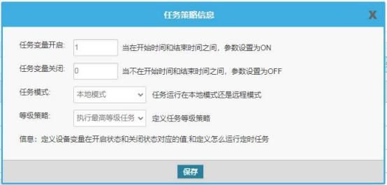 例如,创建多个不同日期和时间段,指定的变量进行开关,可实现全年定时任务自动执行。在多个任务日期重叠时,可选执行高等级的还是并行执行。设有一个远程和本地的控制点,默认为本地状态,网关自己执行设置的任务,当用户将改控制点切换为远程时可进行远程一键开关或者指定的变量进行开关。