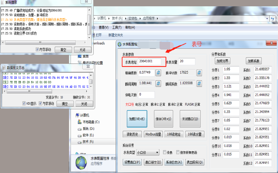 ①水表的串口线顺利获得USB转485线连接到电脑然后打开水表配置工具
