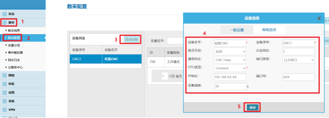 根据CNC设备情况及信息配置后保存。