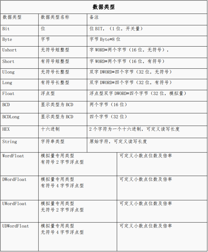 下载中心 视频中心 常见问题 售后服务 工业网关 设备快线 数据云平台 联网设备 问答百科 网关支持采集的数据类型有哪些? 时间:2022-10-26 09:39:53 点击:9932 关键词:工业网关,数据采集,数据类型 问题:网关支持采集的数据类型有哪些? 回答:网关支持采集的数据类型如下表 : 上一篇:工业智能网关会运行时会自动重启怎么处理? 下一篇: 网关采集modbus协议设备时,寄存器类型和地址如何选择?