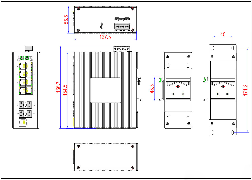 WS2012M网管型工业以太网交换机具有高性能的交换引擎,采用存储转发交换方式,符合IEEE802.3 / IEEE802. 3 u/ IEEE802.3ab/ IEEE802.3z标准,可给予全线速无阻塞转发,给予8个10/100/1000M自适应网口,4个1000M SFP扩展槽。该交换机可以组建一个快速恢复的自愈环网,自愈时间小于20ms,支持对环路的自动检测和倒换。WS-2412给予丰富的网管功能,支持MR-ring快速环网,兼容STP/RSTP/MSTP,基于端口的VLAN、基于802.1Q的VLAN、QOS、IGMP Snooping、广播风暴抑制、端口聚合、端口镜像、端口状态管理、SNMP、NTP对时等。特别适用于组建视频监控,智能交通,工业自动化等领域中有视频,音频等高带宽业务传输需求的千兆网络。现在该产品广泛应用于智能交通,能源风电,管廊隧道,智能变电站等工业恶劣环境。