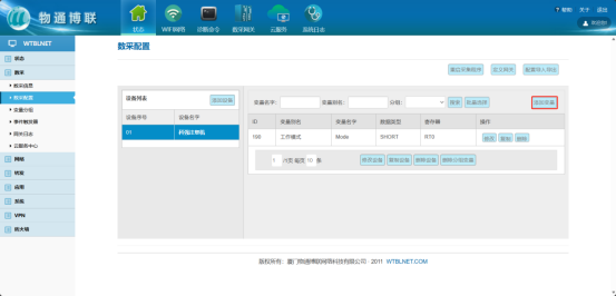 登录网关管理界面,点击数采->数采配置->添加设备。